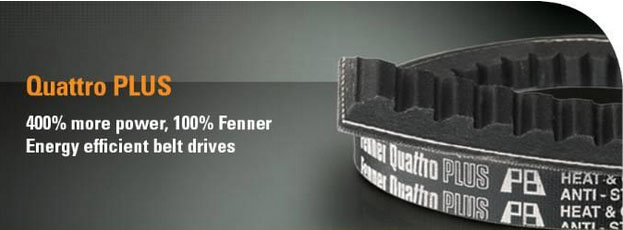 The Fenner Quattro CRE belt transmits up to 4 times the power of conventional V belts. The increase in cross sectional rigidity provided by fibre-reinforced polychloroprene contributes significantly to the performance advantage.